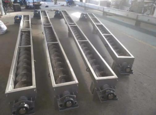 5、不銹鋼螺旋輸送喂料機在儲料倉上安裝振動馬達,能有效解決物料搭架現象;